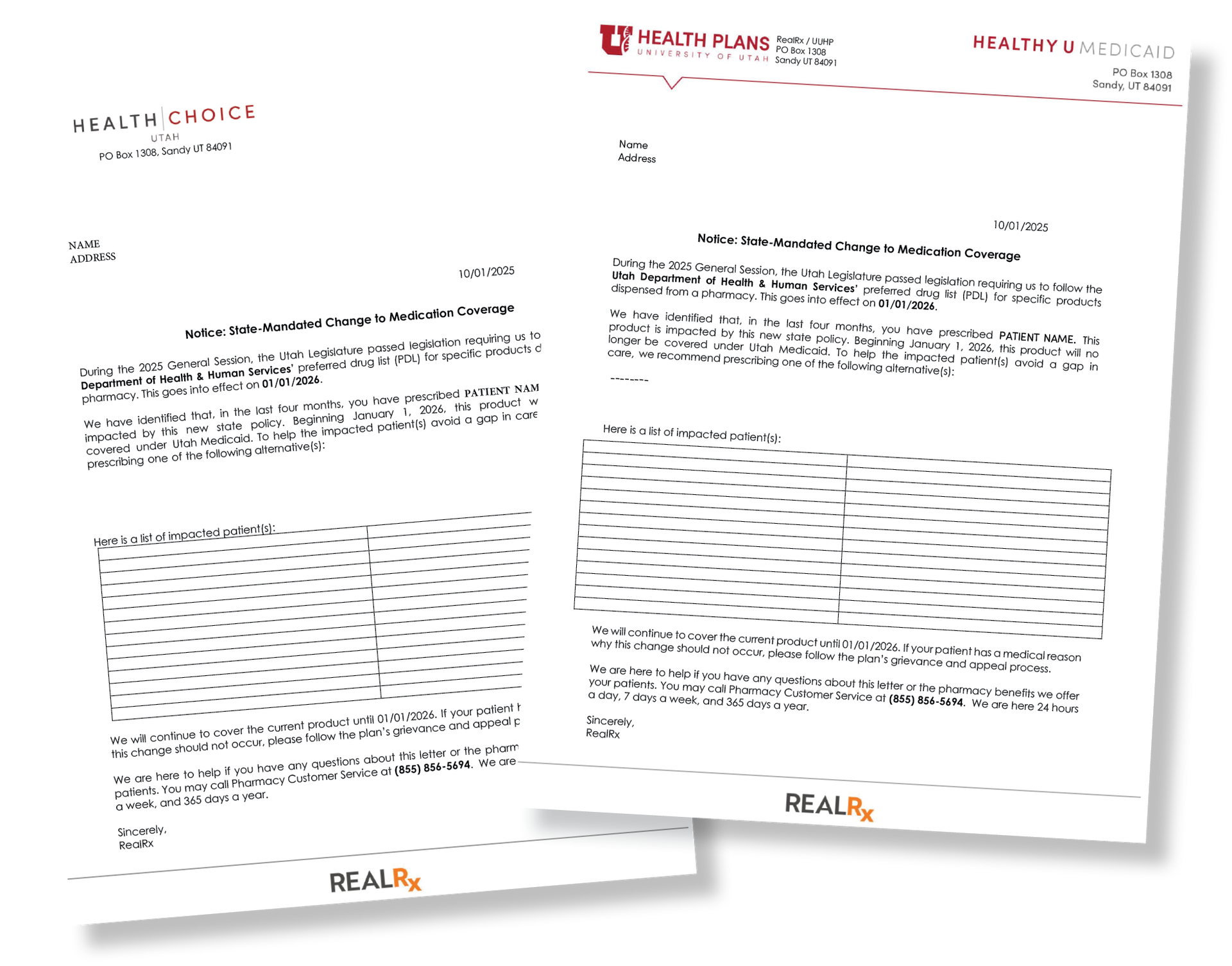 Effective January 1, 2026, Utah Medicaid is requiring that we align certain drug classes on our Medicaid managed care formulary with the Utah Medicaid Preferred Drug List (PDL). An initial 90-day transition period applied prior to January 1, 2026, for impacted members. We previously mailed you a patient list identifying members who may be affected, along with an email that includes the list of drug classes on the Medicaid Hybrid PDL.